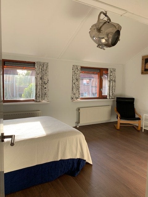 2e verdieping: overloop met berging en tevens opstelplaats wasmachine en droger, 3e grote slaapkamer (gehele breedte van de woning) met Velux dakraam en diepe bergkast. De slaapkamer is voorzien van een laminaat vloer.