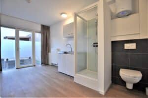 Volledig gestoffeerde studio voorzien van een eigen douchecabine, toilet, wastafel met ombouw en eigen koelkast! De studio is gevestigd in een kleinschalig studiocomplex bestaande uit 6 studio's in totaal.
