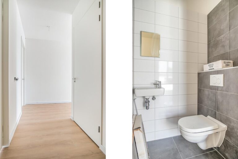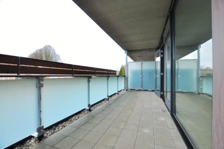 Verder zijn er twee grote slaapkamers gesitueerd aan de voorzijde van het appartement. De royale badkamer is tussengelegen van de woonkamer en slaapkamers, en is uitgerust met een inloopdouche, wastafel met ombouw en spiegel. Het toilet en de berging zijn separaat te bereiken vanuit de hal.