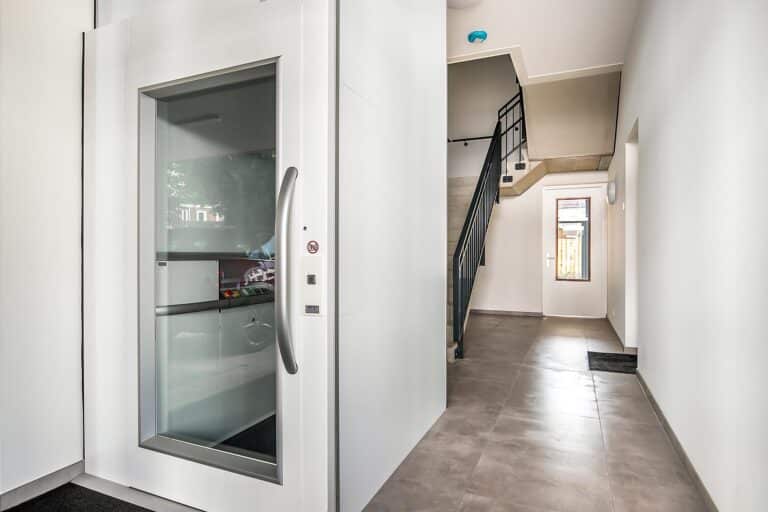 Begane grond: Overdekte entree met parkeerplaatsen, brievenbussen en intercom met camera. Centrale hal met lift en trapopgang naar het appartement. Ook hier is toegang tot de werkloft, een gezamenlijk toilet en een gezamenlijke binnentuin.