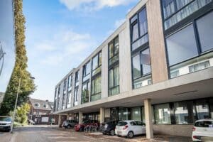 Het is onderdeel van een modern appartementengebouw met 16 woon-/werklofts, ontworpen door een architect.