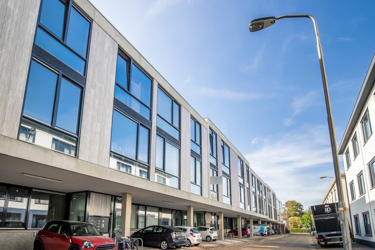 Het is onderdeel van een modern appartementengebouw met 16 woon-/werklofts, ontworpen door een architect.