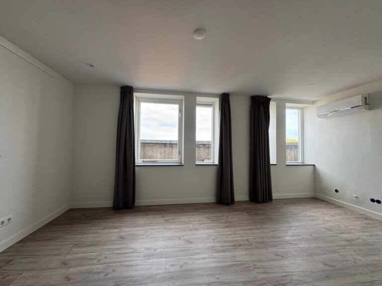 Middels een gezamenlijke toegang is de studio op de tweede verdieping via de trap te bereiken. De woonruimte is voorzien van inbouwspots, raambekleding, en een nette pvc laminaatvloer.