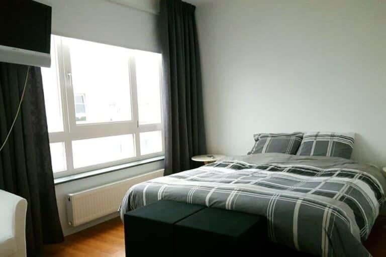 Riante gemeubileerde woonkamer met toegang naar het balkon, welke is gelegen op het noord oosten.