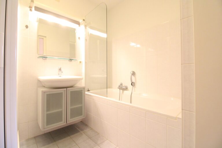Middels een ruim portiek is de eigen voordeur te bereiken. Entree/hal met meterkast en ruimte voor garderobe. Moderne toiletruimte met hangcloset en fonteintje. Keurig verzorgde, nette badkamer voorzien van een wastafel, een ligbad en een separate douche. Royale en bovenal lichte woonkamer met laminaatvloer, grote raampartijen en toegang tot het ruime (overdekte) balkon. Semi-open keuken met keurig verzorgde L-vorm keukeninstallatie (Siematic) voorzien van een gaskookplaat, een (motorloze) afzuigschouw, een koel/vriescombinatie en een vaatwasser. Zeer praktische bijkeuken met wasmachineaansluiting, cv-ketel en provisieruimte. Grote 1e slaapkamer aan de balkonzijde en een 2e eveneens ruime slaapkamer, beiden afgewerkt met een mooie laminaatvloer.