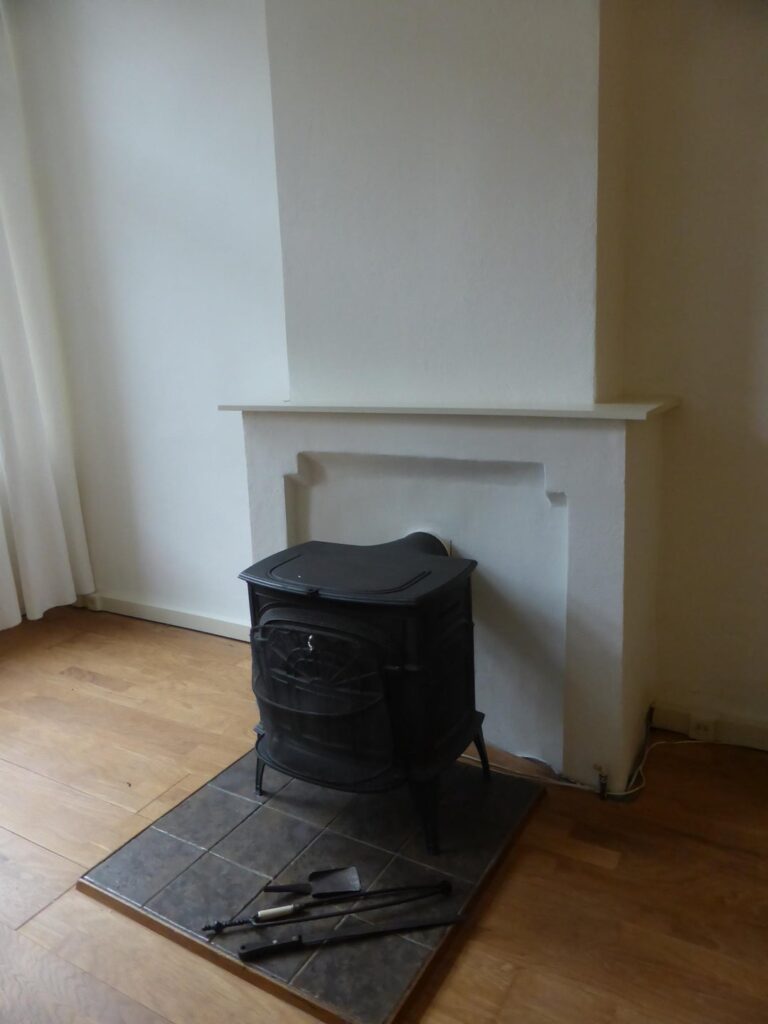 Via de entree kom je in de hal met toegang tot een separaat toilet en praktische bergruimte. De royale woonkamer (ca. 35 mยฒ) is een echte eyecatcher met een prachtige eikenhouten parketvloer, een authentieke houtkachel (naast de aanwezige cv-installatie) en karakteristieke details zoals een ornamentaal plafond, paneeldeuren en twee schouwen.