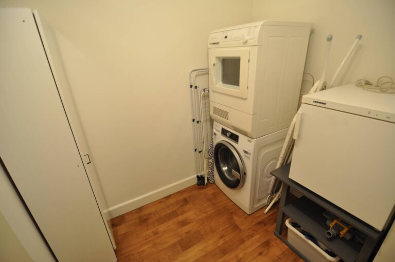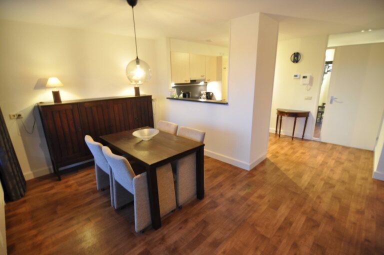 - De keuken beschikt over een elektrische kookplaat, afzuigvoorziening, ijskast, vaatwasser en voldoende kastruimte