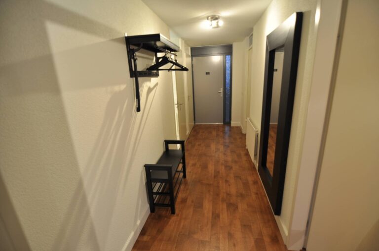 - Hal met laminaatvloer die doorloopt in de woonkamer en de keuken