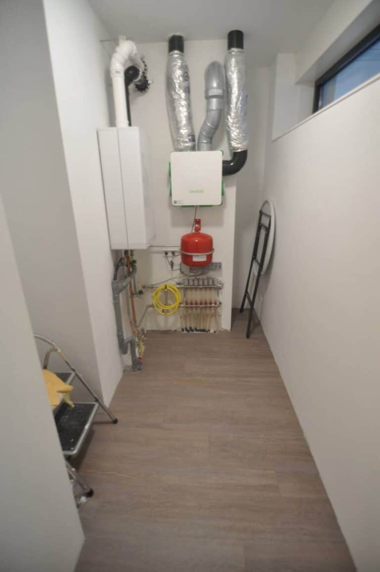 Hal voorzien van toegang tot de diverse vertrekken. Ruime inpandige berging voorzien van een aansluiting voor de wasmachine en CV-installatie. Gastentoilet voorzien van fonteintje.