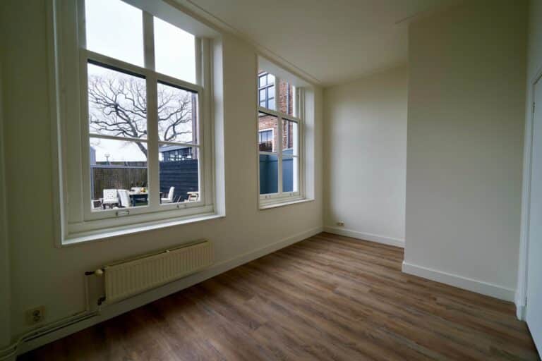 Aan de achterzijde van de woning bevindt zich de ruime slaapkamer met 2 grote raampartijen.