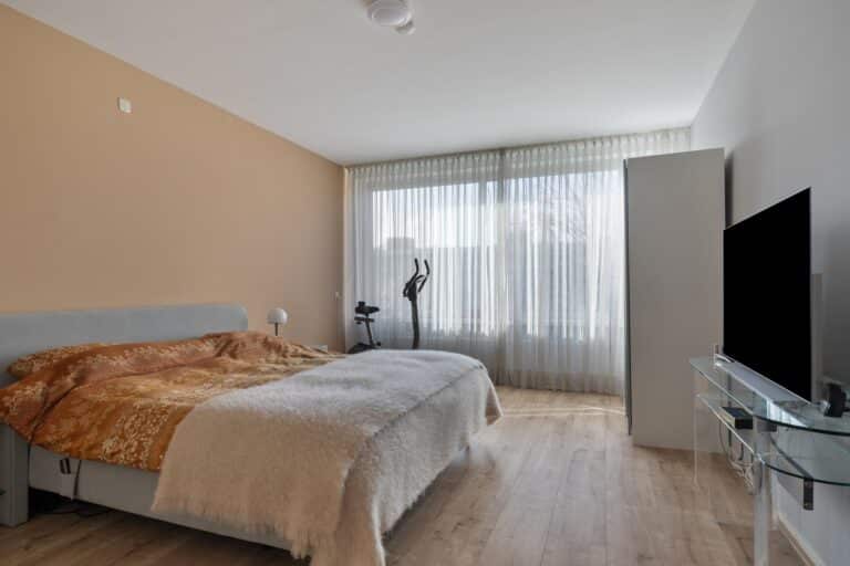 Entree; hal met toegang tot de eerste slaapkamer, badkamer, separaat toilet en woonkamer. Middels de woonkamer zijn de twee balkons, de tweede slaapkamer en de keuken te bereiken. De keuken is v.v. alle gewenste inbouwapparatuur. Badkamer is v.v. ligbad, aparte douche en wastafelmeubel.