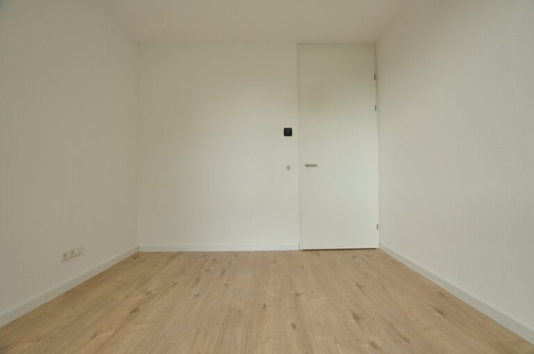 Ruime slaapkamer welke voldoende ruimte biedt voor een tweepersoonsbed en kledingkast.