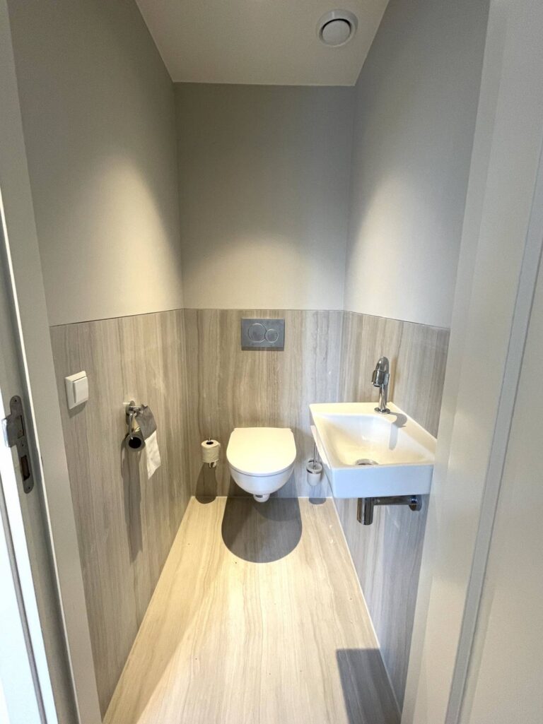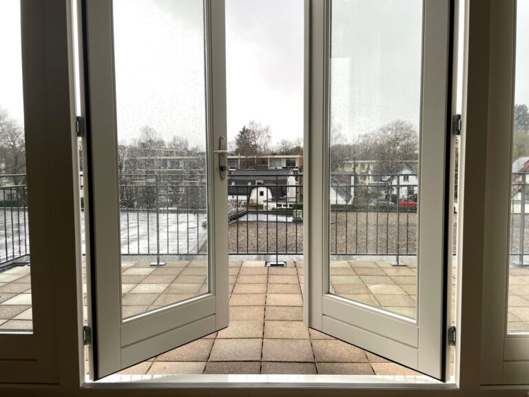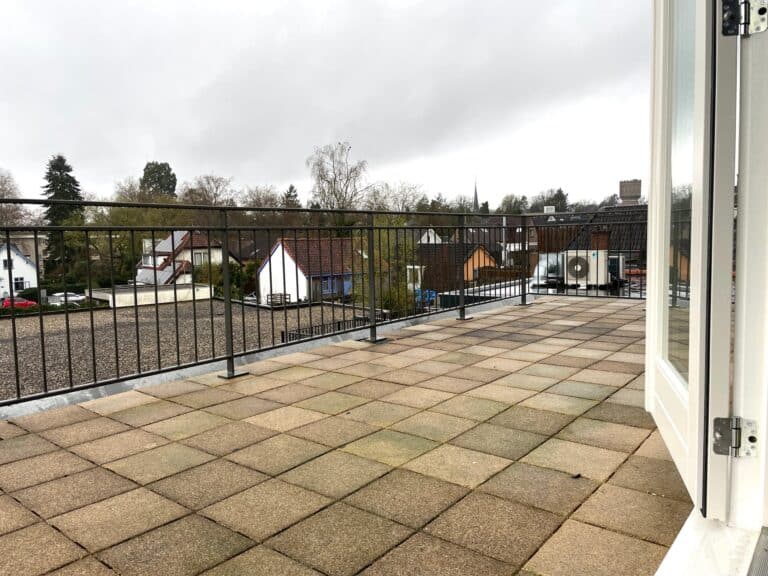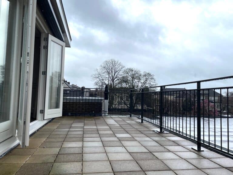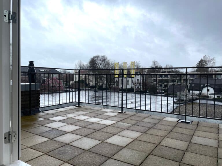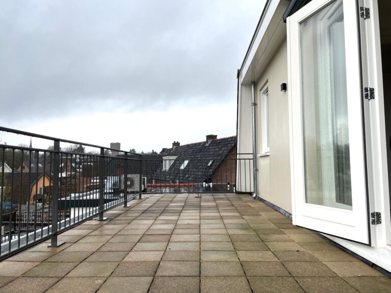 Via openslaande deuren kom je op het ruime dakterras (gelijk level als appartement) met fraai hekwerk/afscheiding.