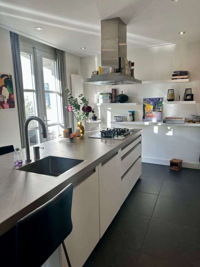 - Moderne woonkeuken (18 mยฒ) met kookeiland en complete inbouwapparatuur