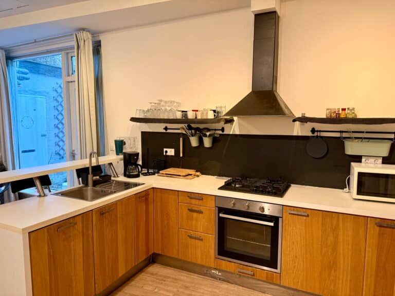 L vorminge moderne hout look keuken voorzien van alle gemak zoals vaatwasser,koelkast met vriezer,gasfornuis,afzuigkap en oven. Woning heeft verlaagd plafond voor extra sfeer en een prachtige houtenvloer. Badkamer gedeelte met douche, separate toilet, wastafelmeubel en wasmachine. Via terrasdeuren kom je in de riante zonnige achtertuin met een berging.
