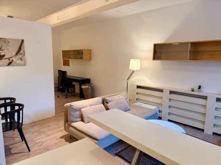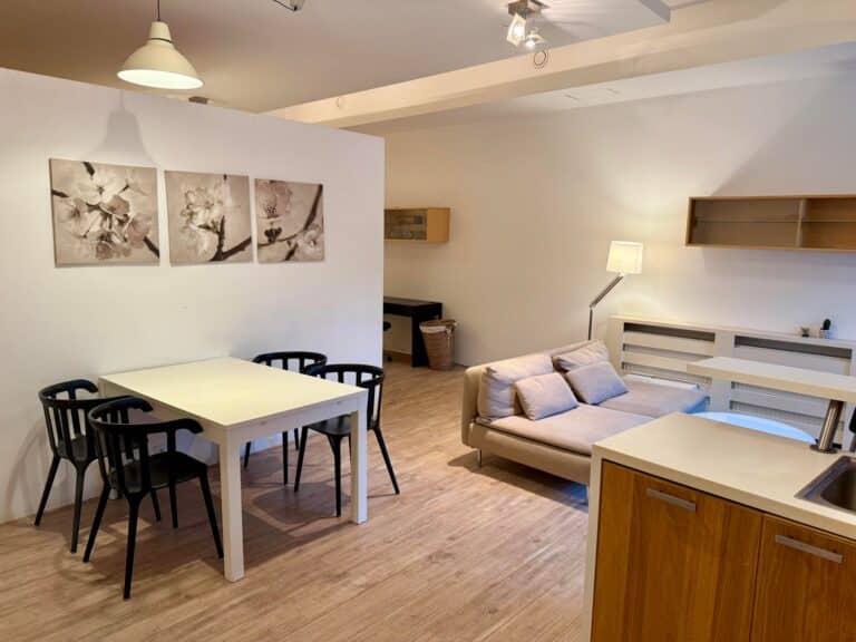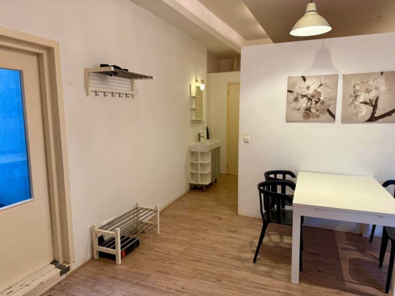Entree, ruimte verdeeld in woonkamer en slaapkamer achter een scheidingswand.