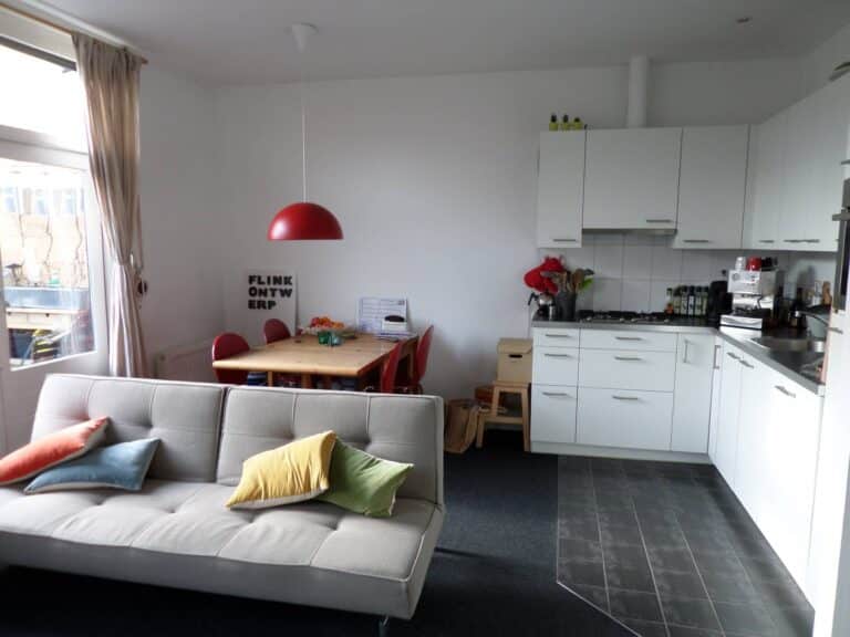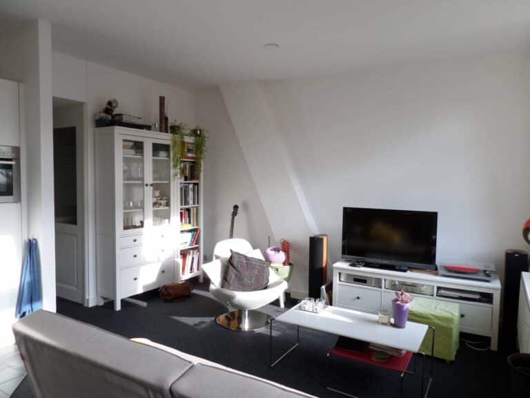 De woonkamer is zoโn 25 mยฒ en voorzien van een nette vloerbedekking, open keuken en royaal dakterras van circa 15 mยฒ. De moderne keuken bevat een oven, kookplaat, afzuigkap, koelkast, vriezer en vaatwasser. In de net betegelde badkamer bevindt zich een hangtoilet, douche, wastafelmeubel en wasmachine aansluiting.
