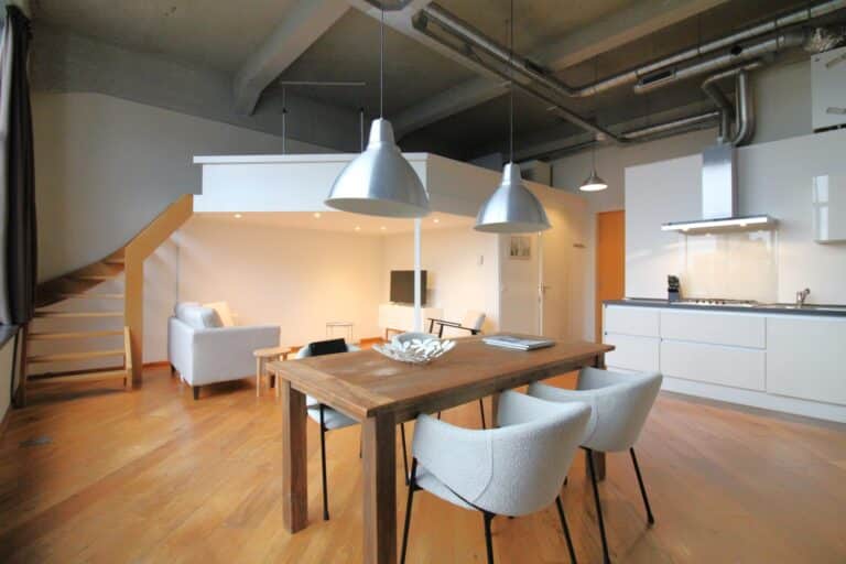 De loft zelf beschikt over een lichte woonkamer met indrukwekkende hoogte, een moderne keuken voorzien van vaatwasser, oven, koelkast en diepvries, een badkamer met douche, ligbad en wastafel, een separaat toilet en een handige interne berging. Via een vaste trap bereik je de sfeervolle slaapvide met tweepersoonsbed.