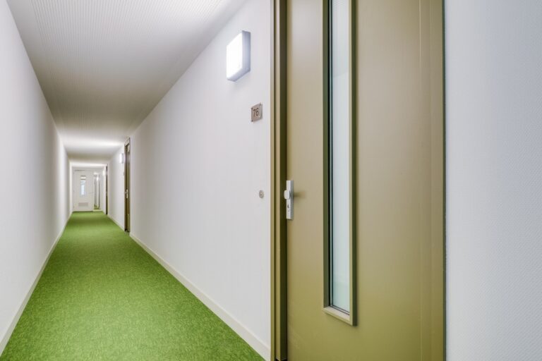 - Strak afgewerkt met houten vloer en gladde wanden.