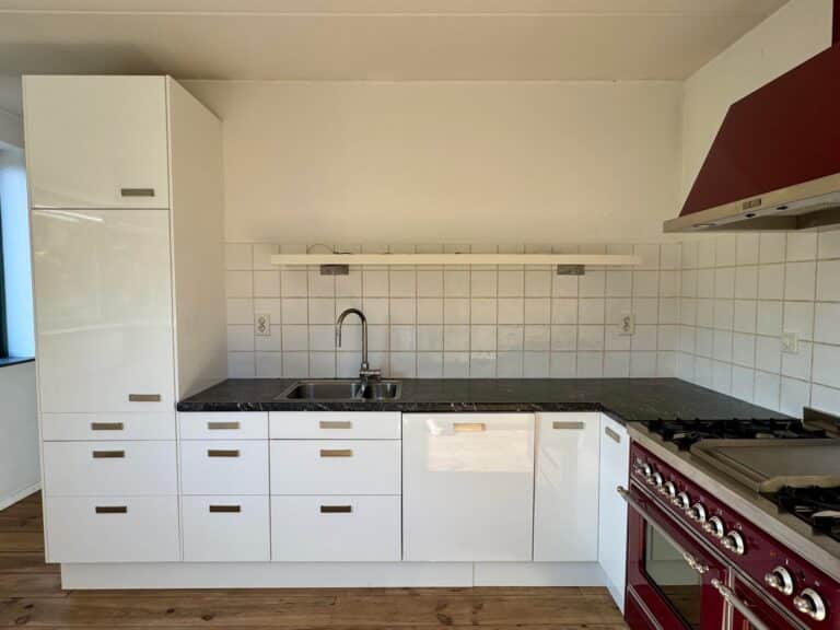 Entree, royale hal. Bijzonder complete afgesloten keuken voorzien van een Boretti fornuis, afzuigkap, vaatwasser, oven, ruime koelkast en vriezer. Aansluitend de living.