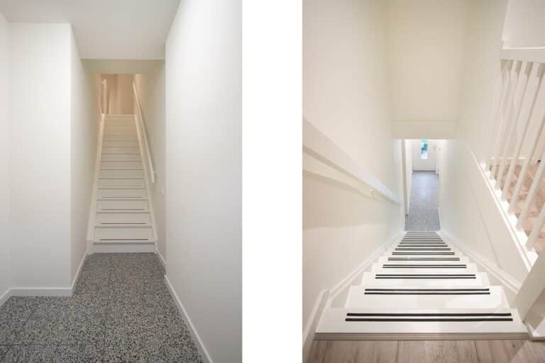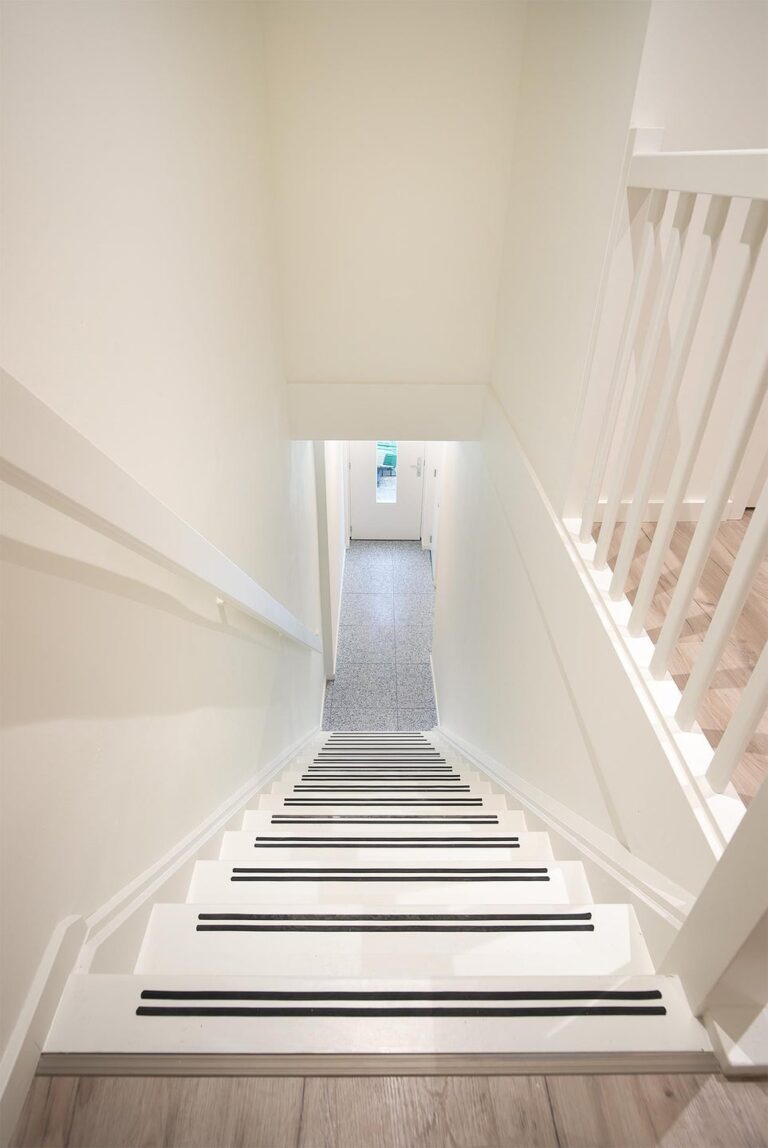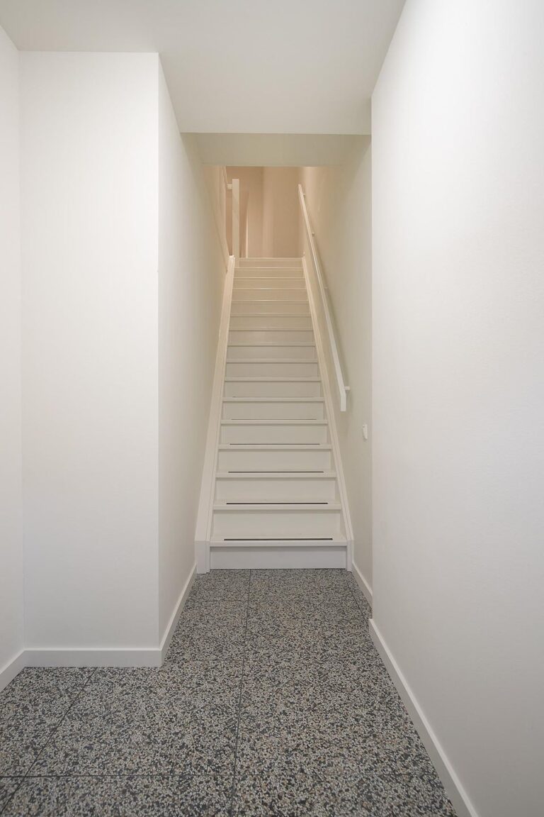 Indeling: het appartement is toegankelijk via de achterkant van het gebouw. daar is ook plaats voor 1 auto. Via een vaste trap bereikt u het eigen terras. Via het terras stapt u de hal binnen.