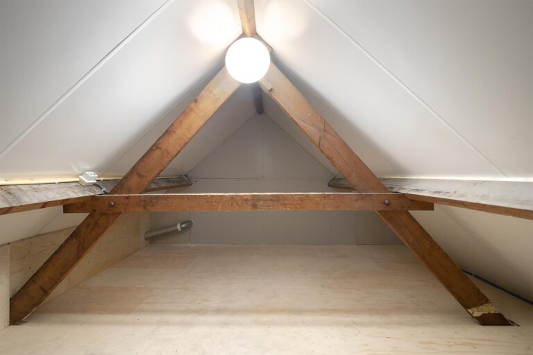 Ook is er een zolder zonder vaste trap voor beperkte opslag.
