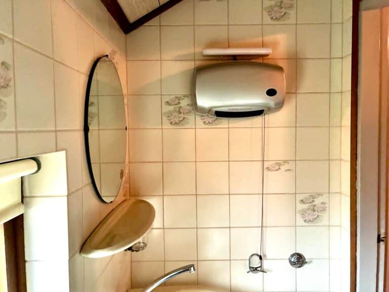 Op de eerste verdieping bevinden zich drie slaapkamers. De twee grootste kamers zijn uitgerust met ingebouwde kasten, wat extra opbergruimte biedt. De badkamer op deze verdieping is eenvoudig ingericht met een douche en een wastafel.
