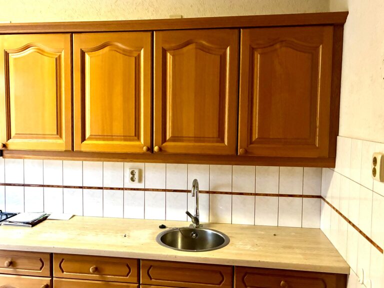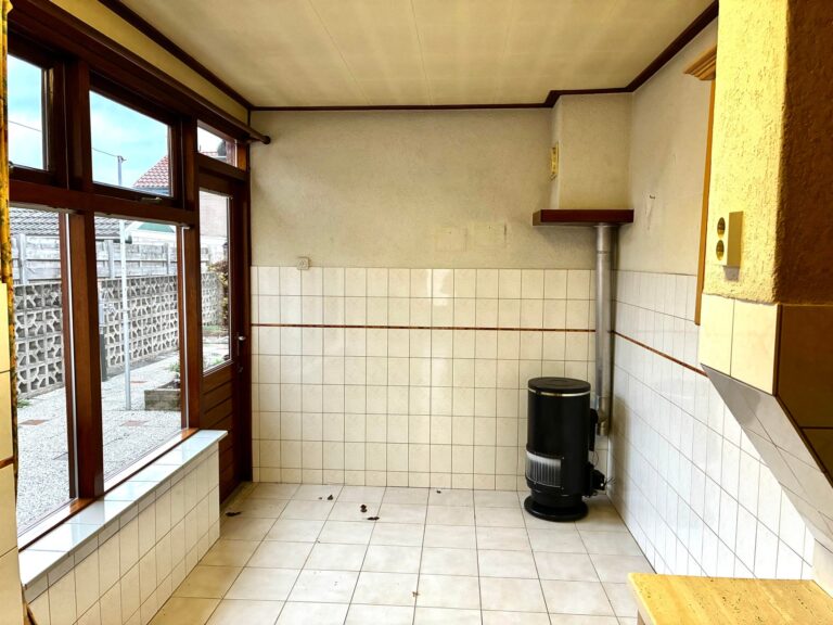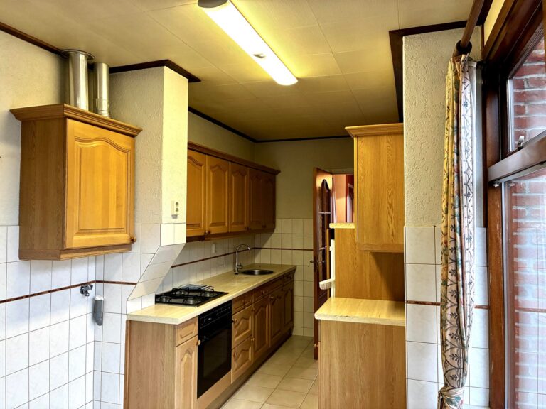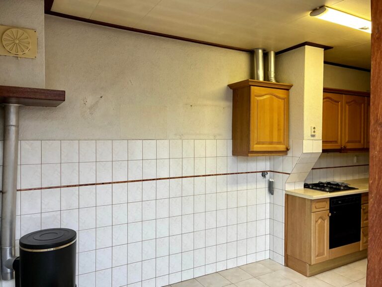 De keuken aan de achterzijde van het huis heeft een praktische opstelling aan beide zijden en is voorzien van inbouwapparatuur. Via de keuken heb je toegang tot de achtertuin.