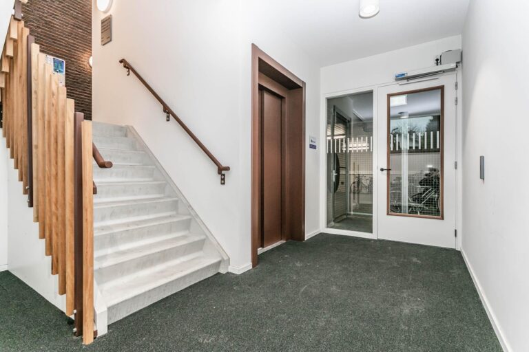 Duurzaam Drie-kamer appartement gelegen op de 2de verdieping met 8 zonnepanelen. – 1 slaapkamer + 1 slaap/ hobbyruimte – Badkamer incl. toilet – Separaat toilet – Keuken met een composiet keukenblad.