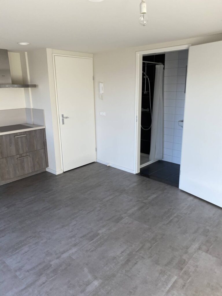 Te huur, in een in 2020 geheel verbouwd en gemoderniseerd gebouw, een studio met alle eigen faciliteiten zoals keuken, badkamer en toilet.
