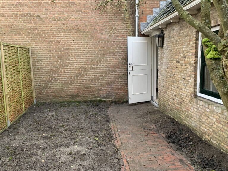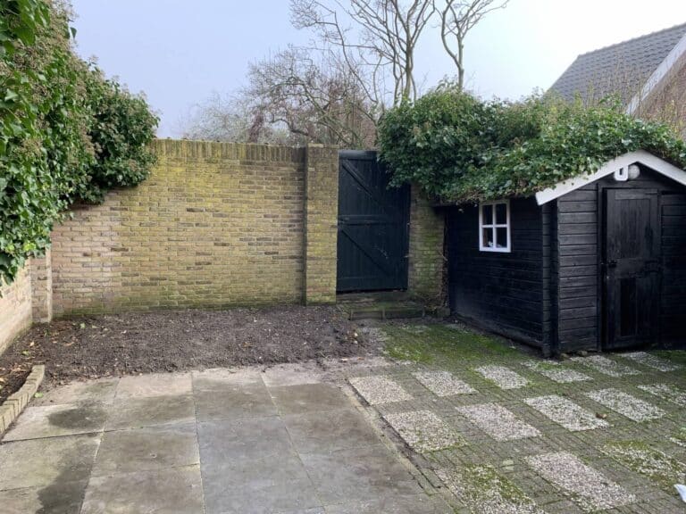 De hoofdtuin heeft een achterom via het pad langs de zijgevel van de woning. De tweede tuin die bij deze woning hoort, is van binnenuit bereikbaar.