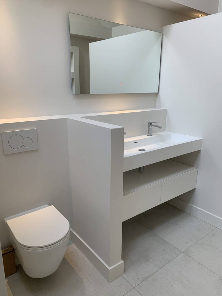 Ruime hal met toilet (v.v. hangtoilet met fonteintje), meterkast en toegang tot de ruime kelder met stahoogte (ca. 25m2) voorzien van wasmachine aansluiting en ideaal voor extra opslag van spullen.