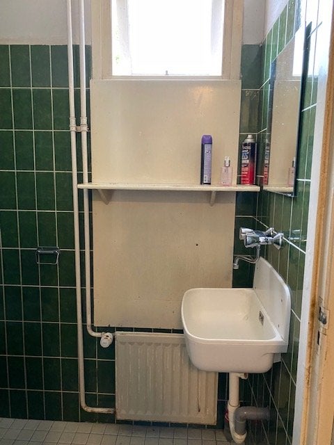 De badkamer bevindt zich op de begane grond. ook hier is een ruime keuken. Hier staat ook de wasmachine.