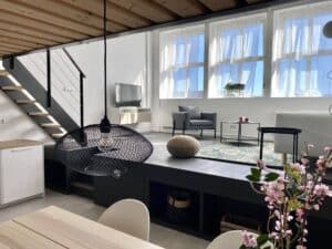 Dit appartement is een fantastisch loft appartement waarbij de ruimte verdeelt is over 3 niveau's.