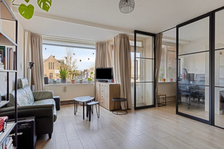 Aansluitend aan de woonkamer is een ruimte die afgesloten kan worden met een schuifdeur waardoor een extra kamer gecreรซerd kan worden.
