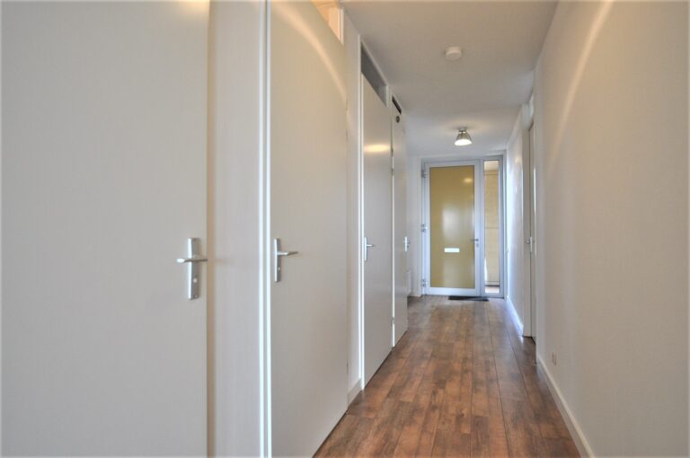 Toegang tot de woning vanuit de open galerij. Middels de hal kunt u de woonkamer, beide slaapkamers, badkamer, het toilet en de berging betreden.