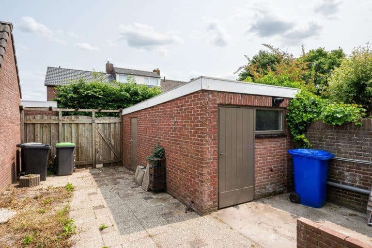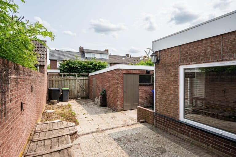 De woning beschikt over een voor- en achtertuin. De achtertuin beschikt over een berging voor extra opslagruimte en een achterom die uitkomt op de brandgang.