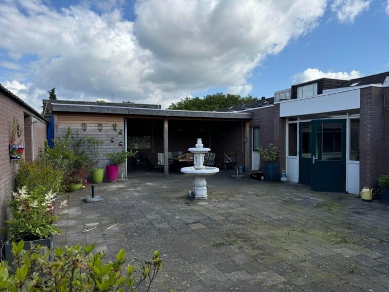 gezamenlijke plaats met een overkapping om te kunnen zitten en een overkapping voor de fietsen.