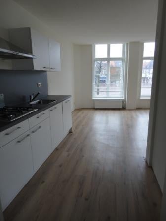 Eigen entree met garderobenis en hal met toegang tot het toilet, slaapkamer en woonkamer. De woonkamer v.v. laminaatvloer, heeft een open keuken met afwasmachine, combi-magnetron, gaskookplaat, afzuigkap en koelkast met vriesvak. Vanuit de woonkamer heeft u een prachtig uitzicht op de altijd levendige Markt. Berging met Cv-ketel en wasmachine.