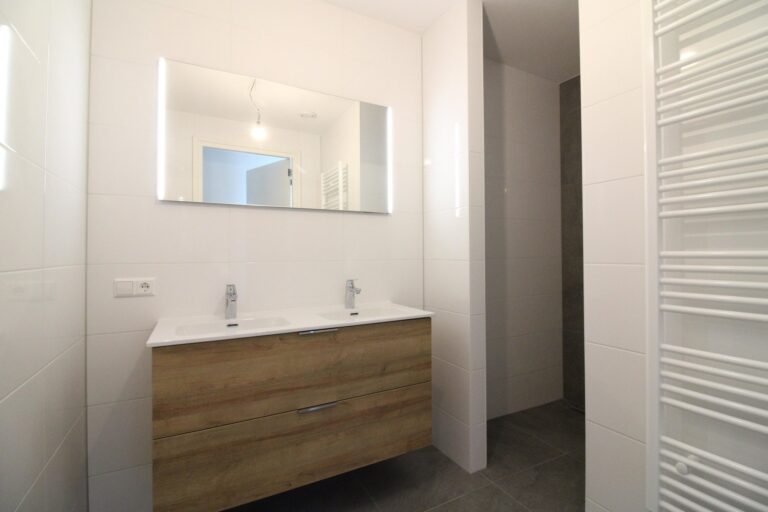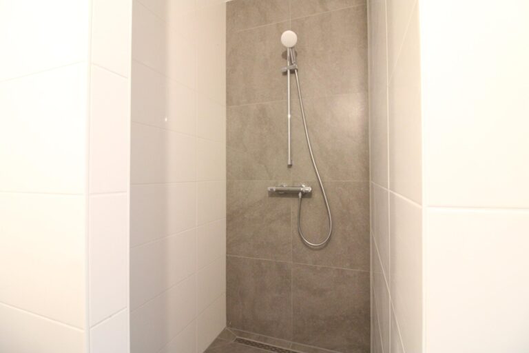 Achter de woonkamer gelegen hebt u de toegang tot de benedenslaapkamer van ca. 15m2, met aangrenzend de badkamer bestaande uit een inloopdouche en dubbele wastafel met ombouw. Het toilet is separaat te bereiken, alsmede een handige bergruimte onder de trap met een aansluiting voor de wasmachine.
