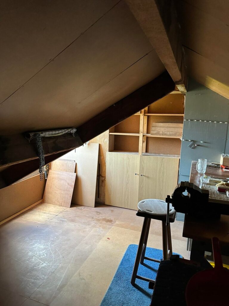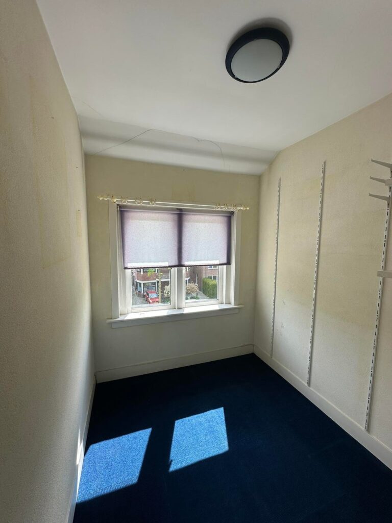- Tweede etage, 2 ruime slaapkamers, 1 kleinere slaapkamer / werkkamer, badkamer. Vlizotrap naar zolder.