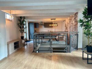 ✅ Woonkamer – Sfeervolle, volledig gemeubileerde woonkamer met toegang tot het terras via openslaande deuren.
