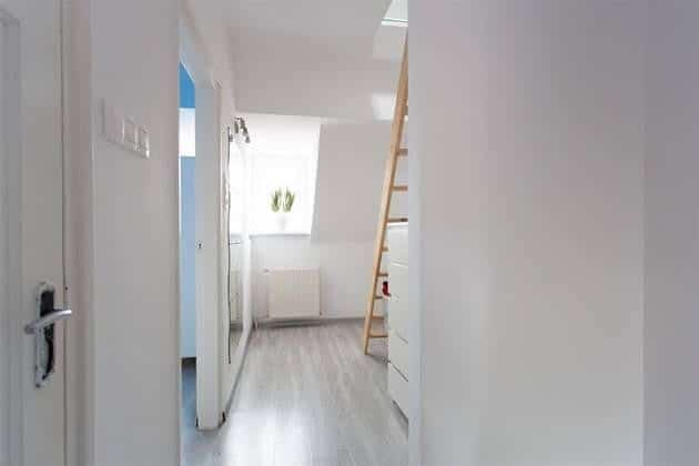 royale inloop kast. Slaapkamer 2 is gelegen aan de achterzijde van de woning en is eveneens voorzien van een laminaatvloer en beschikt over een dakkapel. Tussen beide slaapkamers is een geheel vernieuwde doucheruimte gecreëerd met een ruime douche en een meubel met vaste wastafel.