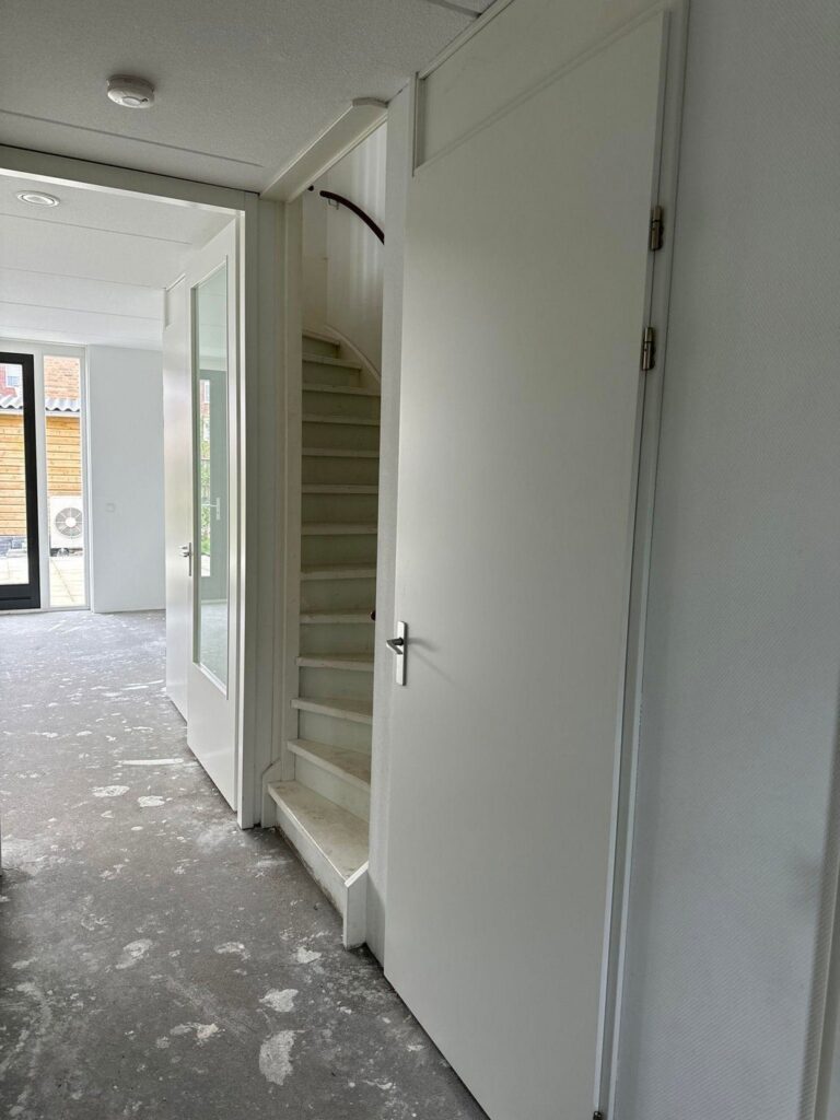 Begane grond: hal/entree met meterkast, opstelplaats voor de waterpomp, trapopgang. Tuingerichte woonkamer met openslaande tuindeuren en trapkast. Open keuken met Siemens inbouwapparatuur en composiet werkblad aan de voorzijde van de woning.