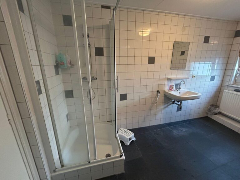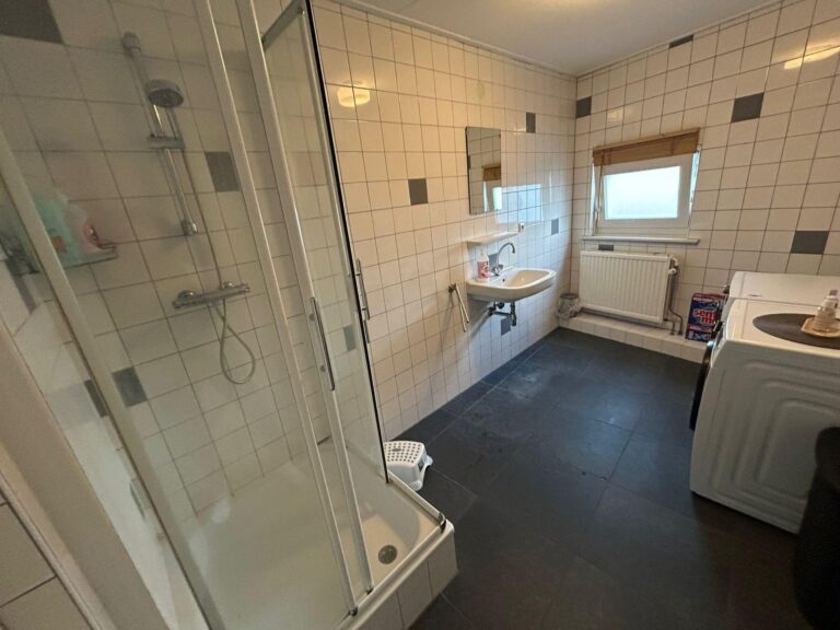 - Badkamer met douche, vaste wastafel en aansluitingen voor wasmachine en droger