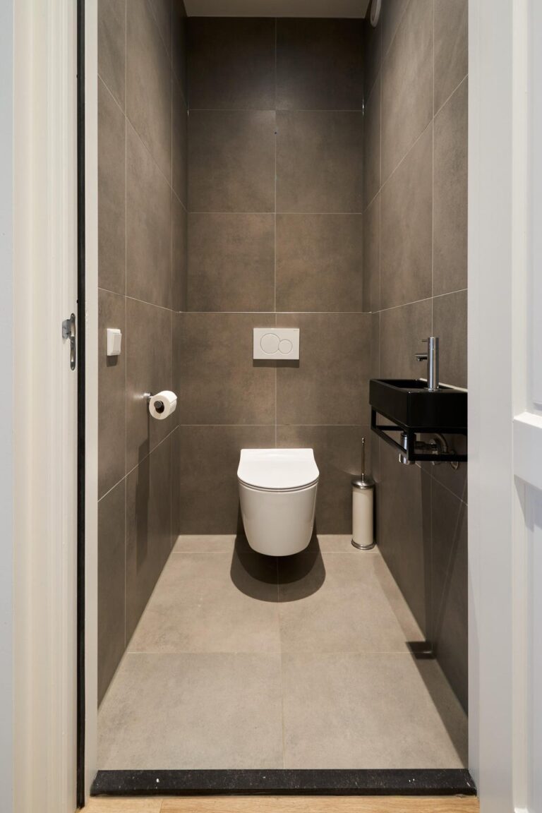 The luxurious bathroom was recently installed and is therefore also completely new. The bathroom consists of a toilet with a wall-mounted toilet, a designer radiator, a washbasin, and a (rain) shower.