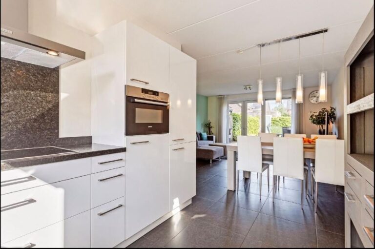 Dankzij de vloerverwarming is het overal behaaglijk en zijn radiatoren overbodig. Vanuit de woonkamer middels de openslaande tuindeuren toegang tot de achtertuin.