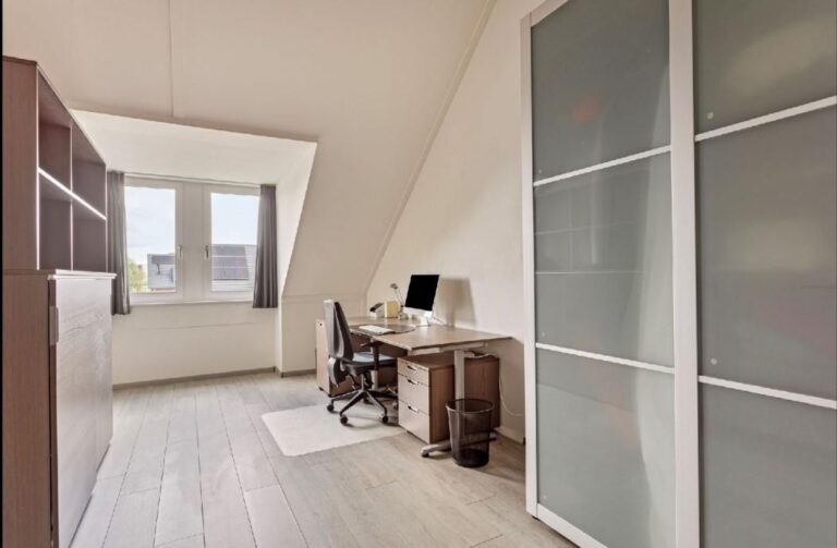 De verrassend ruime zolder herbergt een vierde, zeer royale slaapkamer. Ideaal als slaapkamer maar kan ook perfect gebruikt worden als werk/studeerkamer.