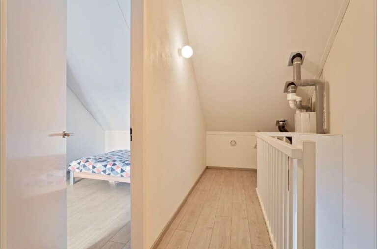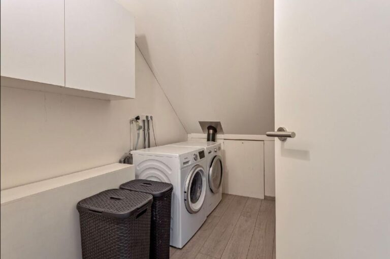 Op de voorzolder vind je de aansluiting voor de wasmachine en extra bergruimte.