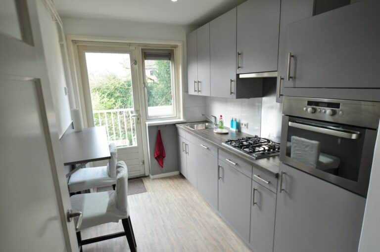 Aparte keuken welke voorzien is van diverse apparatuur. Middels een deur heb je toegang tot het balkon aan de achterzijde.